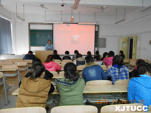 西安交通大学城市学院外语、护理系于2012年11月14日中午在A303进行了“青春铸辉煌,献礼十八大”最佳团日活动答辩。本次答辩由外语、护理系学工办负责人蒋芳芳、团工委书记汪寸琬、辅导员樊超以及部分外语、护理系学生会学生干部担任评委。