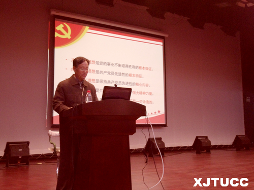 2012年11月12日晚上八点,西安交通大学城市学院管理系在教2报告厅举行了第十七期党课第一讲——青年大学生理想与中国共产党,本次学习由学院党委书记赵金胜主讲。