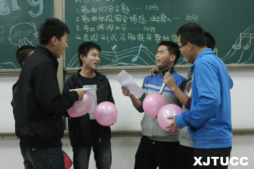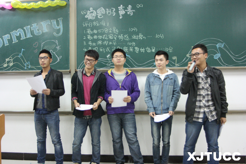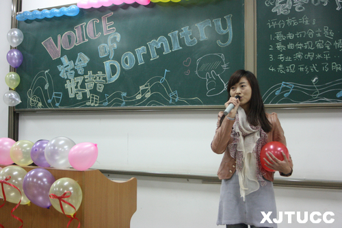 西安交大城市学院应用经济系第三届宿舍文化节“青春•乐章”系列活动之三“青春交响曲——宿舍好声音”评比大赛于10月29日在F300拉开帷幕。此次比赛到场评委有系团工委负责人梁玉梅、辅导员徐珊珊、茹静、杨超敏。此次评比是“青春交响曲——宿舍创意装饰大赛”活动内容之一,通过歌声来传递宿舍同学之间真诚亲密的友谊,来展现同学生活的丰富多彩!