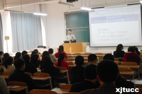玉川広三先生先以精彩的自我介绍拉开讲座序幕,随后分别从兄弟机械公司的具体情况、日系企业雇佣制度及其利弊、日系企业对录用人员的要求以及近年来大学生的就业前景等方面为同学们做了详细的介绍。讲座的过程中玉川先生还利用视频等方式使得讲解深入浅出、生动形象。