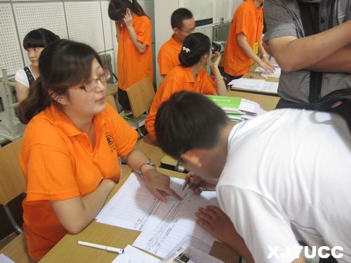 8月23、24两日,西安交通大学城市学院活动中心迎来了来自祖国各地的2012级新生,在系主任杨健全老师及系副主任史冬梅老师的指导下,应用经济系新生报到注册有序展开。在两天的忙碌工作中,值得赞扬的是应用经济系系学生会及各位自发前来的志愿者们。他们在系学工办负责人王飞老师、系团工委书记梁玉梅老师及各位辅导员老师的认真指导下,为新生报到工作贡献出了自己的一份力量。志愿者们身穿橙黄色T恤,在宿舍楼、在服务站、在注册点随处可以看见他们忙碌的身影,众多的志愿者见到新生和家长马上微笑着迎上去,并主动帮家长们搬手中的沉重行李。他们积极悉心地向新生及新生家长解答各方面问题,使得他们感受到来自学院、来自应用经济系大家庭的关怀,同时也让报到注册工作有条不紊地开展。
