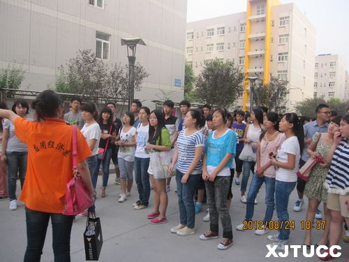 在报到注册结束后,应用经济系学生会还组织各个专业的新生对校园进行参观了解,学生会志愿者们向2012级新生认真仔细地讲解了学院的概况,让他们更加了解学院,更加了解应用经济系。在领导巡视期间,2012级新生还围圈坐在操场上用自己的方式交结新朋友,让自己更加快地融入到新的环境中来。学长们学姐们用真诚的微笑温暖每一位新生,用热情的服务感染每一位新生,让师弟师妹们感受到离家求学后并不孤单,让他们在异乡也能够体会到家的温暖。最后学生会志愿者们还向各位新生宣传了应用经济系学生会,鼓励他们积极参与到这个展示自我的舞台上来。