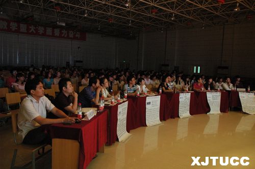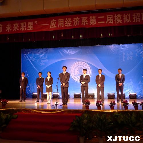 6月7日晚7点,由西安交大城市学院应用经济系团工委主办的“勇往职前,未来职星”第二届模拟招聘会在大学生活动中心隆重举行。本次大赛邀请到应用经济系主任杨健全老师、副主任史冬梅老师,应用经济系专业老师:郭关科、李茂盛、梁彩虹老师担任评委老师。此外,本届招聘会还特别邀请到学院04级优秀校友们:陕西恒天置业集团项目总监王晶、西安珠江投资有限公司市场营销中心销售部经理霍鹏、陕文头西部传媒销售策划部主管张兆鹏、招商银行贵宾理财顾问杨晨以及08级的两位优秀毕业生,现就职于银泰百货的郭智超学长和就职于浦发银行的姚植远学长作为特邀评委与参赛选手进行职场交流。大赛由应用经济系郭子铭同学主持。