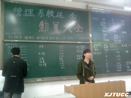4月12日中午,在我校运动会召开前夕,西安交大城市学院管理系在D100举行了管理系校运会赛前动员大会。管理系代团工委书记刘健老师、管理系各班班长、体育委员以及部分运动员参加了本次会议,会议由管理系学生会副主席杜斌主持。