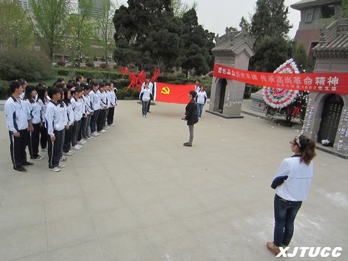 是日,艳阳高照,中午12点刚下课,很多同学都没来得及吃饭,就从校门口东侧集合出发,经过两个多小时辗转,下午15时许,支部一行36人来到了庄严肃穆的西安烈士陵园。