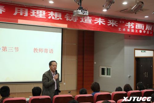 3月28日晚七点,获奖作品展示及颁奖典礼在F100教室召开,到会的颁奖嘉宾有张敬朝副院长、艺术系主任助理张春新、经济系团工委书记梁玉梅,计算机系团工委书记贺婧及各教研室专业老师。颁奖典礼由作品欣赏、教师点评、颁奖仪式及教师寄语四个环节组成。每位老师专业精辟的点评和希望寄语让同学们受益匪浅。颁奖典礼最后,张敬朝副院长对新生作品给予了充分的肯定与鼓励,也对同学们提出进一步要求,建议同学们要规范格式、扎根传统文化,同时也要有所创新。