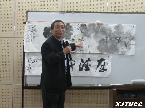 在杨教授的精彩讲解下,不仅让同学们懂得了中国画丰富的笔墨语言运用,而且更注重笔墨语言所传达的情感,使学生对中国画的理解得到了高度的认识。此次讲座,让同学们受益匪浅,其间赢得了阵阵掌声,讲座取得圆满成功。
