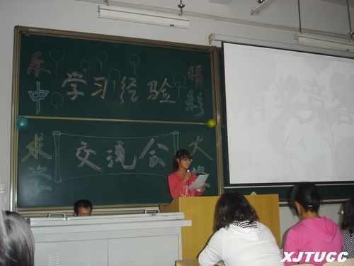 2011年10月17日晚上7:00,西安交大城市学院计算机系举行学习经验交流会。此次学习经验交流会主要针对大一新生,交流会以“学,乐中求学;享,精彩大学”为主题,充分展示了大学学习的精神所在。