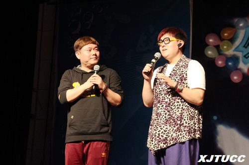 在一段动感激昂的舞蹈《舞娘》之后,总决赛十强选手依次登台亮相。比赛现场,选手们一展歌喉,他们情深并茂的演唱深深感染了观众,现场不时响起热烈的掌声和欢呼声。在两轮PK之后,金勇老师和鲁洋老师登台即兴演说,金勇老师向同学们表演了出神入化的灰太狼配音,赢得了同学们的热烈掌声。