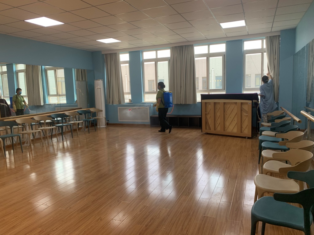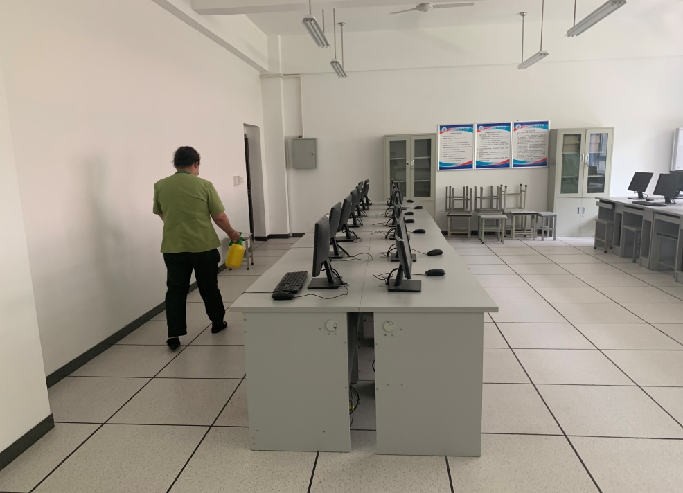 为做好本学期开学的准备工作,给学院师生提供一个干净、舒适、安全的学习环境,我院物业服务的同志们在做好负责区域的保洁工作的基础上,积极主动联系各系实验室、语音室等不属于承包范围内的房间67间,分别于2020年5月14、15、18日进行了彻底消毒、清洁。为广大师生准备了一个良好的学习环境。