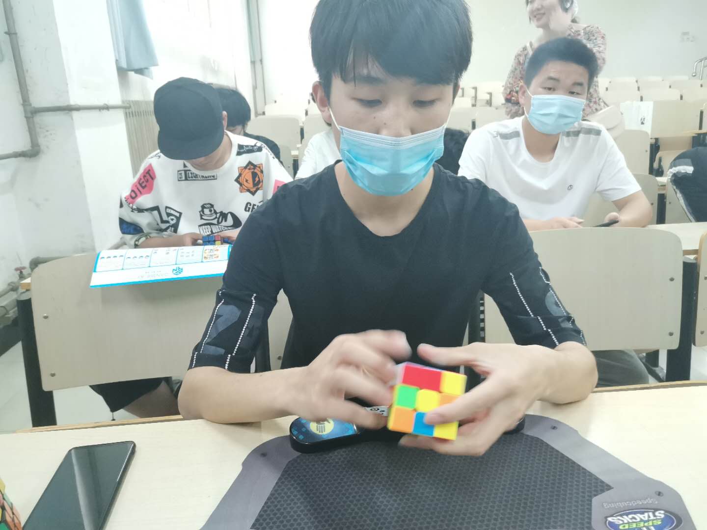 下午2时30分棋类和魔方类趣味项目如期举行。挑战选手各自分开就坐,各阶以及不规则魔方规定时间复原,这是一场兼并速度与智慧的挑战;围棋、五子棋、象棋,从落子深思熟虑,到颓势逐渐显现,最终回归重逢和友谊。