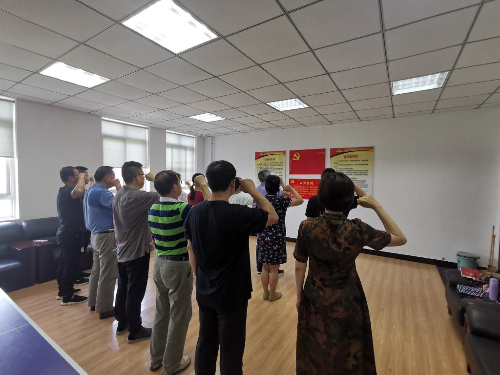 最后,学院机关第四党支部“不忘初心,重温入党誓词”的主题活动伴随着雄壮的国歌圆满结束。