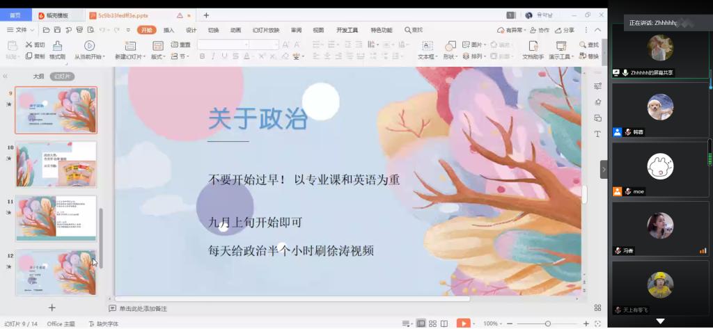 最后,韩蓉对本次考研经验交流分享会进行总结,在考研过程中,要制定合理的学习计划,选择合适的目标,保证良好的心态,坚定自己的目标,少一些功利的追求,多一些不为什么的坚持,才会达到预期的目标。考研是人生中主动选择的长跑,所有的迷雾和不确定都是暂时的,希望每个同学都可以守得云开见月明,顺利上岸。