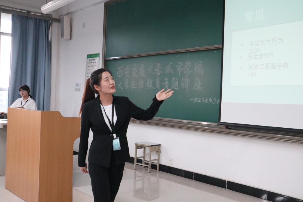 为普及大学生性教育相关知识,6月30日晚,西安交通大学城市学院性教育专题讲座于教二413教室如期举行。本次讲座主讲人为护理系学生工作负责人叶超老师以及微尘志愿服务队性教育宣讲团:刘帅、雷梦聪、周蒙、鱼婉滢、屈子慧。参会人员为护理系19级全体学生。