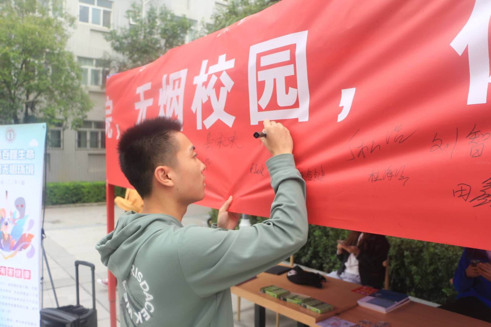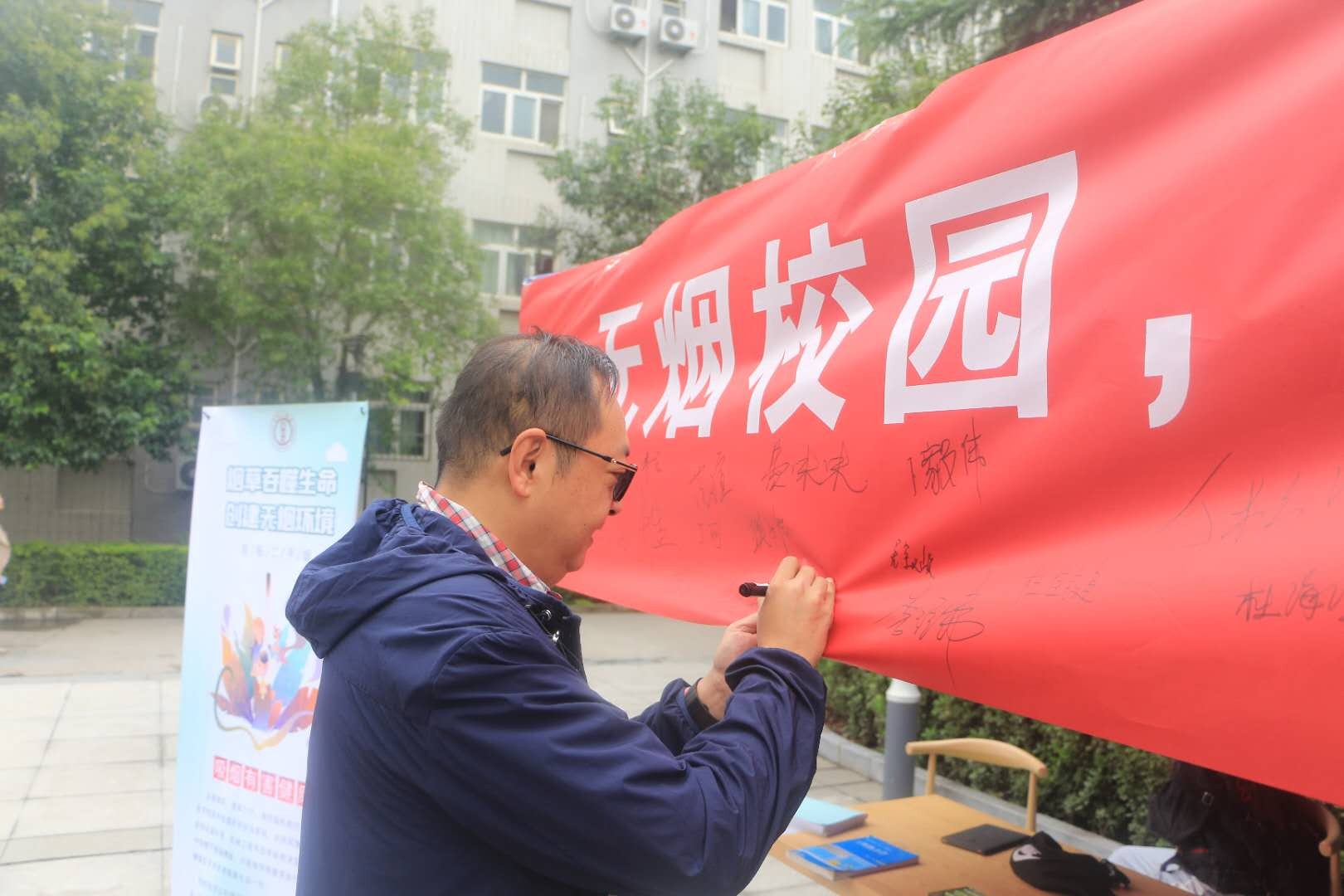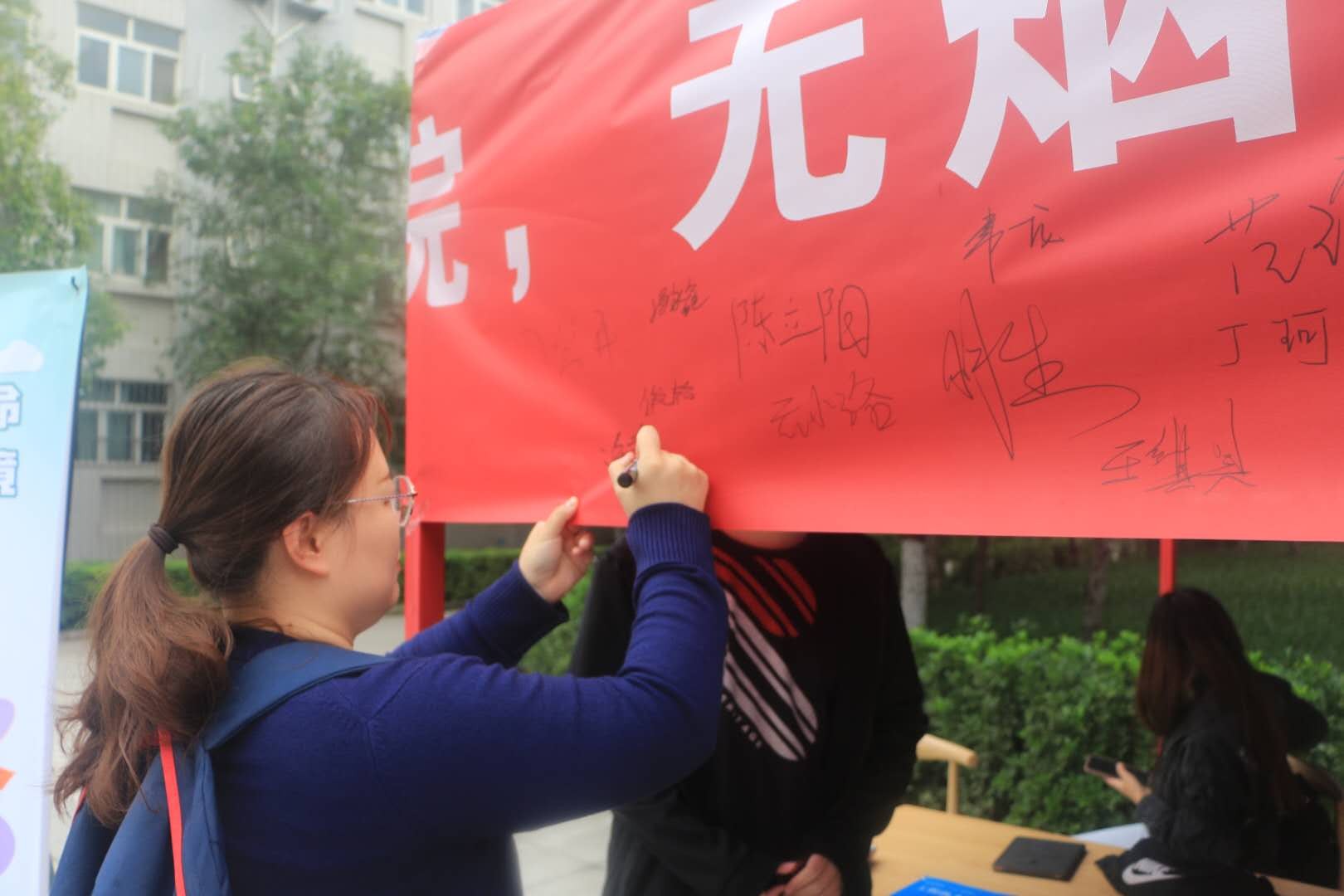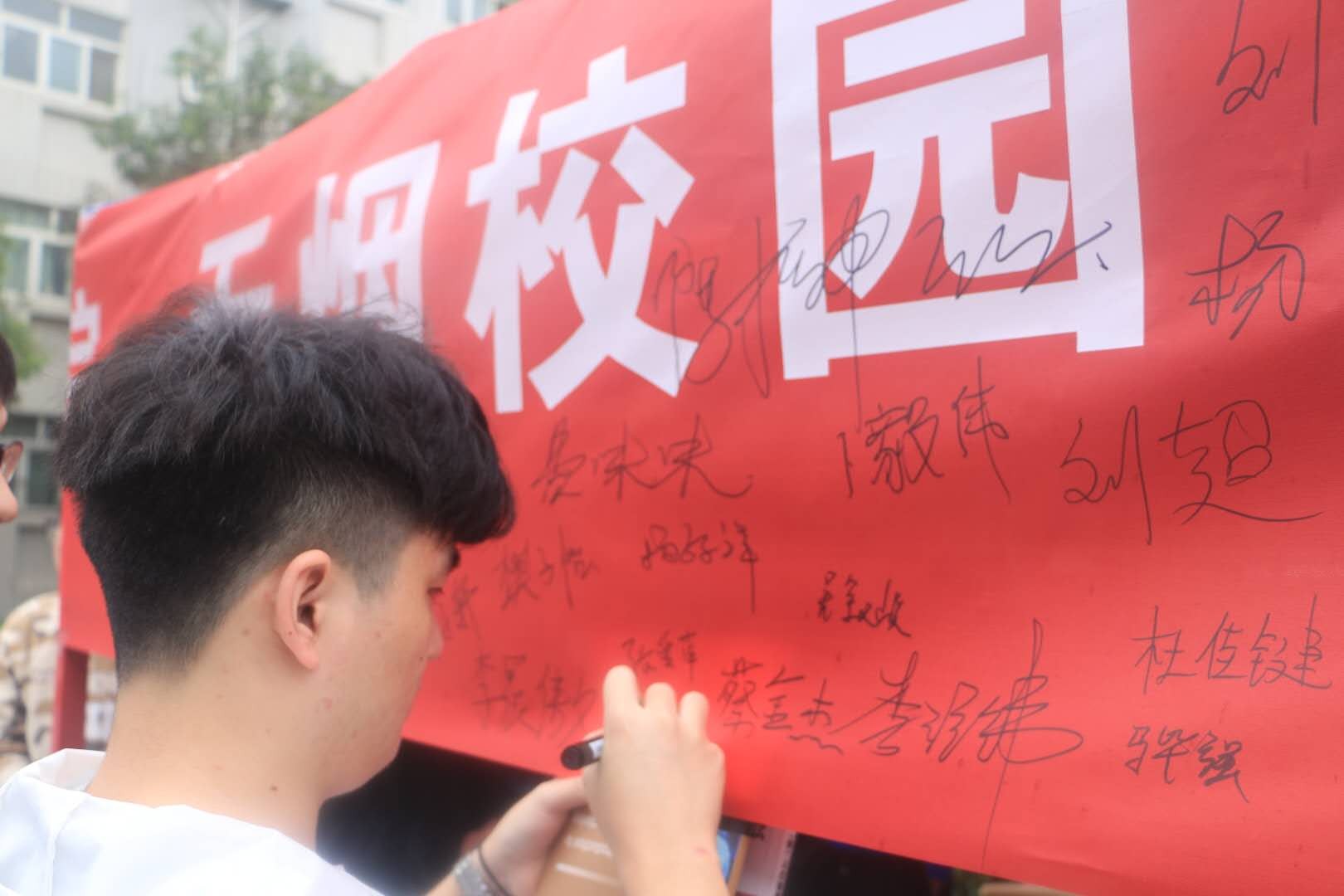 本次活动主要面向校园内吸烟的师生发起无烟倡议,让师生们自发地在无烟横幅上签名承诺以示禁烟决心。机械工程系为签字承诺的师生送上纪念品以示感谢。学院党委书记张爱萍等老师带头在横幅上签下自己的姓名,为校内的广大师生做出了表率,激发了同学们共同实现“无烟校园”的热情,提高了同学们对烟草危害的重视程度,使得本次禁烟宣传活动更加深入人心。