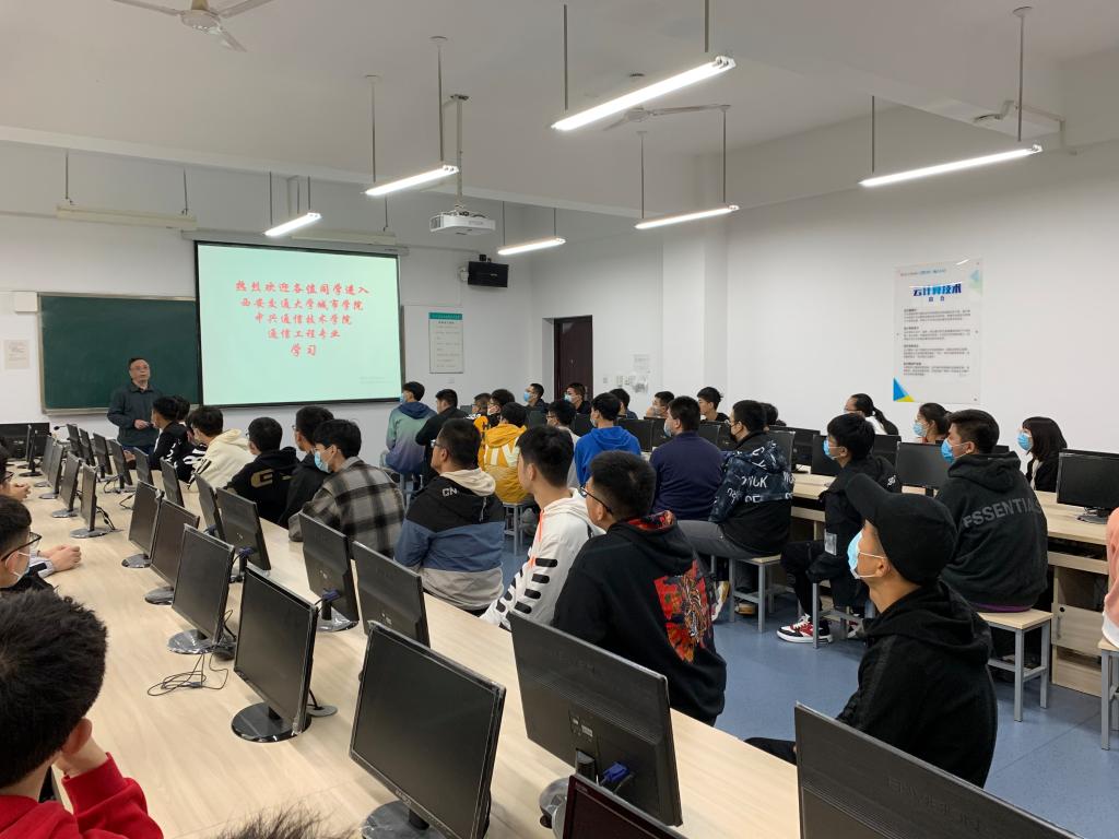为引导学生对专业学习及自身发展前景形成初步认识,增强师生间的交流与沟通。10月13日下午,中兴通讯技术学院2020届师生见面会在教学楼A413教室正式召开。出席本次见面会的有西安交通大学城市学院电信专业首席教授,中兴通讯技术学院院长冯恩信;中兴通讯技术学院企业讲师张成老师、徐艳老师、邓列妍老师及中兴通讯技术学院辅导员樊超老师共同参加。