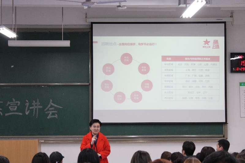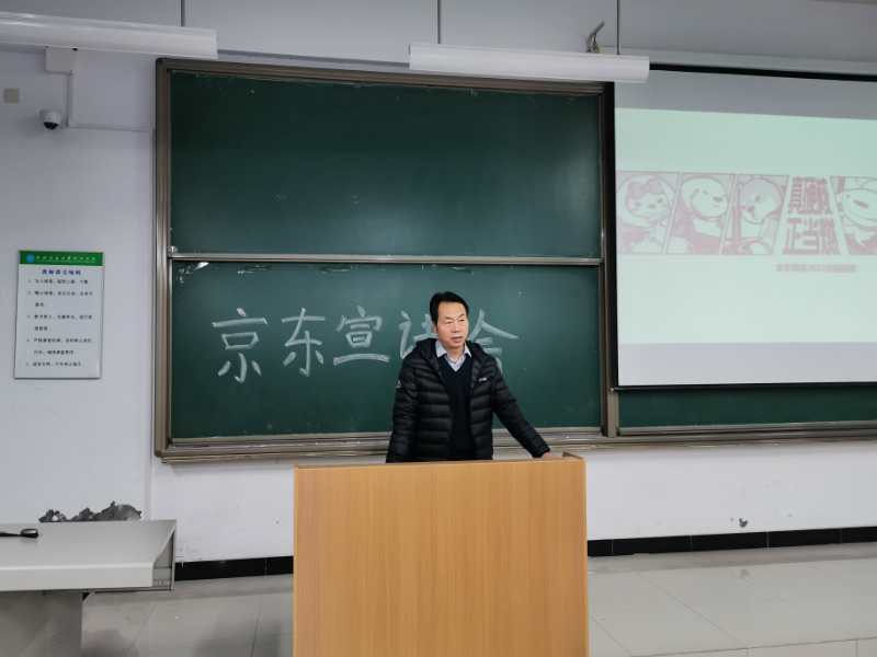 会议伊始,郭关科老师表示对于毕业生与京东集团的合作实习,希望大家要向历届优秀实习生学习,并鼓励本届的同学把握此次机会,找到合适的实习岗位。会议第二项,京东集团白经理向同学们展示了京东西北分公司的发展,表示今年校园招聘会将更加侧重于人才培养,而不只是单纯招揽人员。会议第三项,京东集团朱主管向同学们详细解释了本次招聘会的意义,然后向同学们分别展示了京东集团的发展史、未来计划、员工福利、人才标准、人才培养方面的相关资料。最后,由王旭老师进行总结,并亲自解答同学们提出的问题,进一步消除同学们对于京东集团招聘的各方面疑虑。
