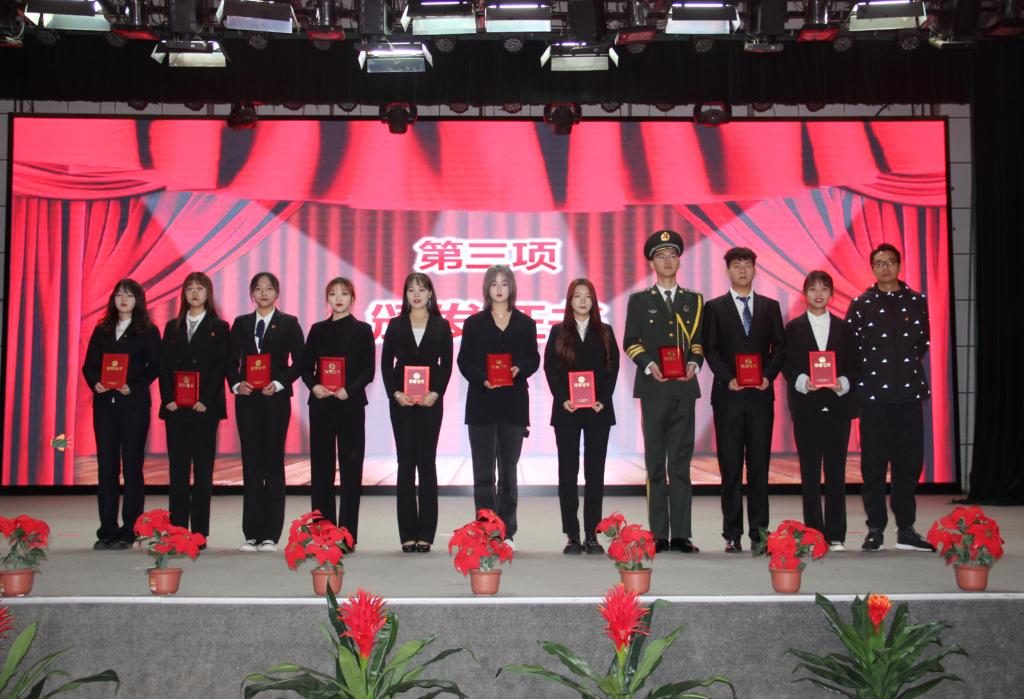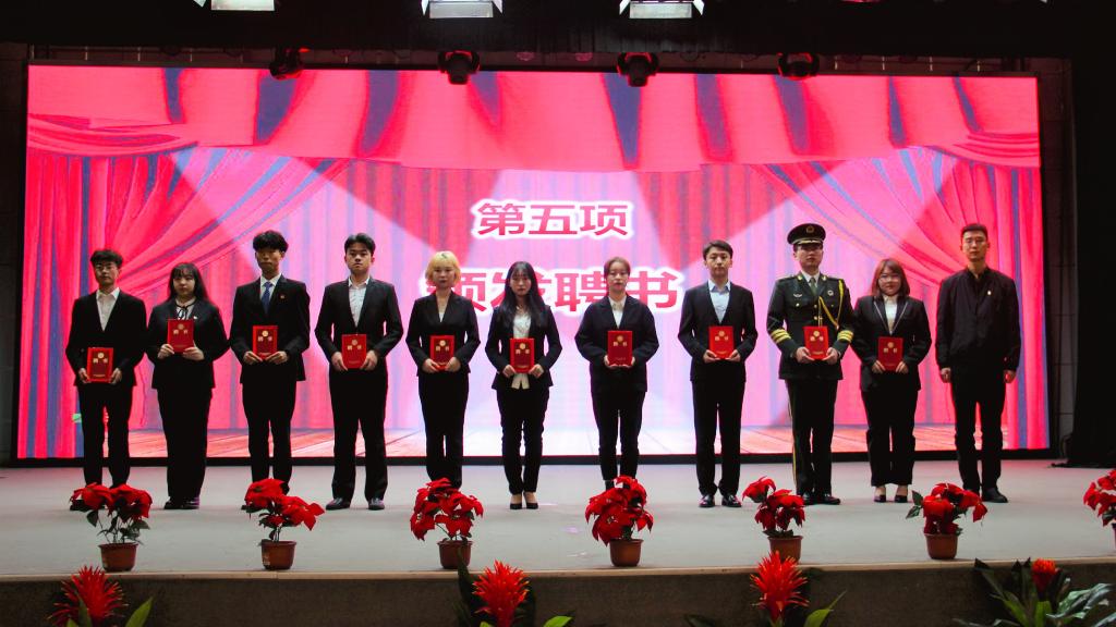 在慷慨激昂的团歌中,大会正式开始。首先,由团委金牧羊老师宣读《关于表彰西安交通大学城市学院2019届优秀团学干部的决定》,团委丁义伟老师向各位学生干部代表进行颁奖。其次,由团委茹静老师宣读《关于赵旭升等103名院级团学组织新干部任命的决定》,由团委书记吴昊翔老师以及各系团工委书记分别为院级学生干部代表及各系学生干部代表颁发聘书。