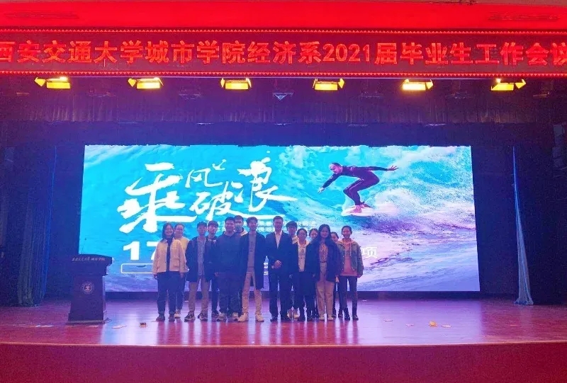 为明确大四学生的考研及就业目标、使他们提前做好毕业规划、明确毕业要求,对毕业后的就业方向有更加清楚的了解,西安交通大学城市学院经济系于10月27日在教二报告厅举办了经济系2021届毕业生工作会议,莅临本次大会的嘉宾有:经济系主任张文科、经济系副主任史冬梅、经济系主任助理张美丽、经济系学生工作主管廉宇婷、猿辅导校园招聘安晨睿经理以及经济系各辅导员老师。本次大会由李金泽同学主持。