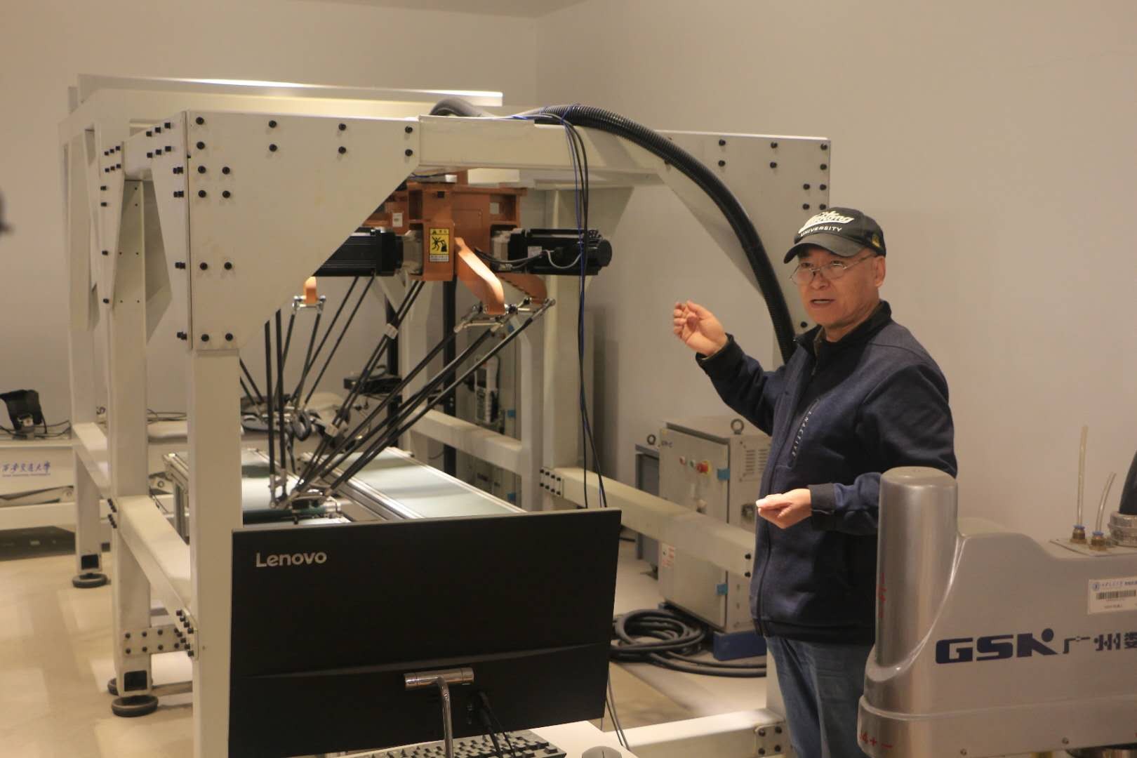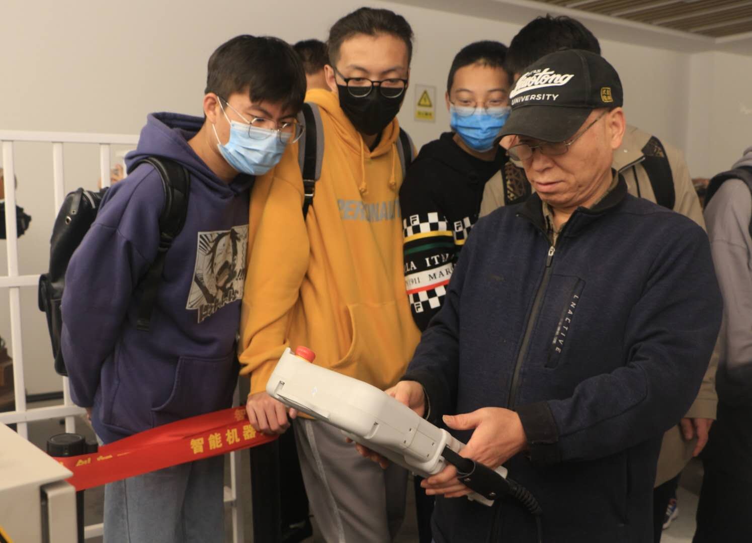 参观过程中,徐学武老师介绍了智能机器人基地情况,带领同学们走进智能机器人创新研究院,详细讲解团队研发产品的相关情况。在讲解之中,徐学武、程爽两位老师与同学们就机器人行业的发展现状以及前景展开热烈探讨。最后,徐学武老师通过教学演示向同学们展示了智能机器人创新成果。