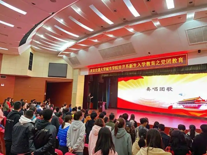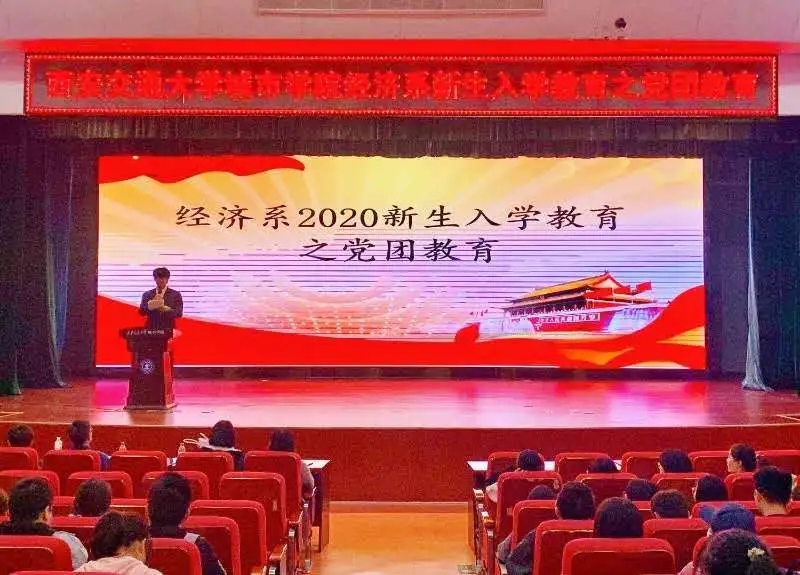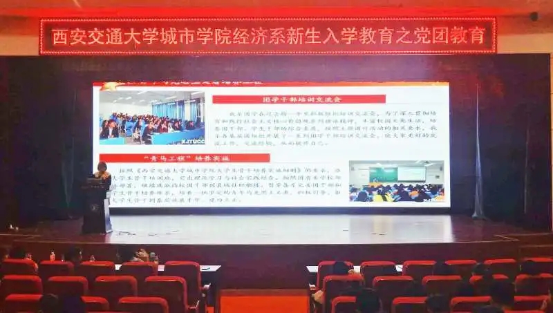 为了进步一使大学生坚定理想信念,帮助新生明确入党动机与流程,更好的为社会主义建设事业贡献力量。西安交通大学城市学院经济系10月30日中午于教二报告厅举办了党团教育大会。莅临本次大会的嘉宾有学生工作主管廉宇婷、团工委书记蒋美一帆和新生辅导员王经洲。本次大会由李嘉伟主持。