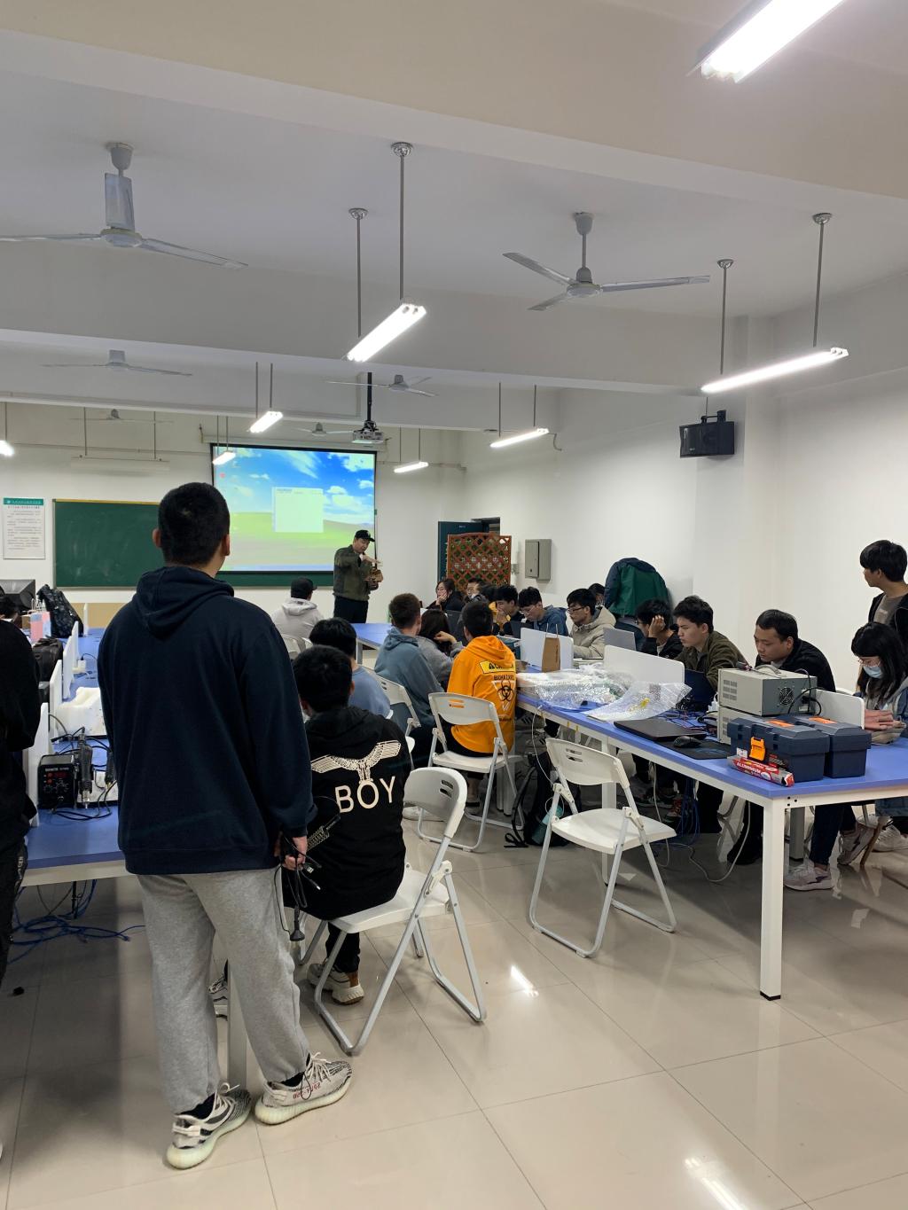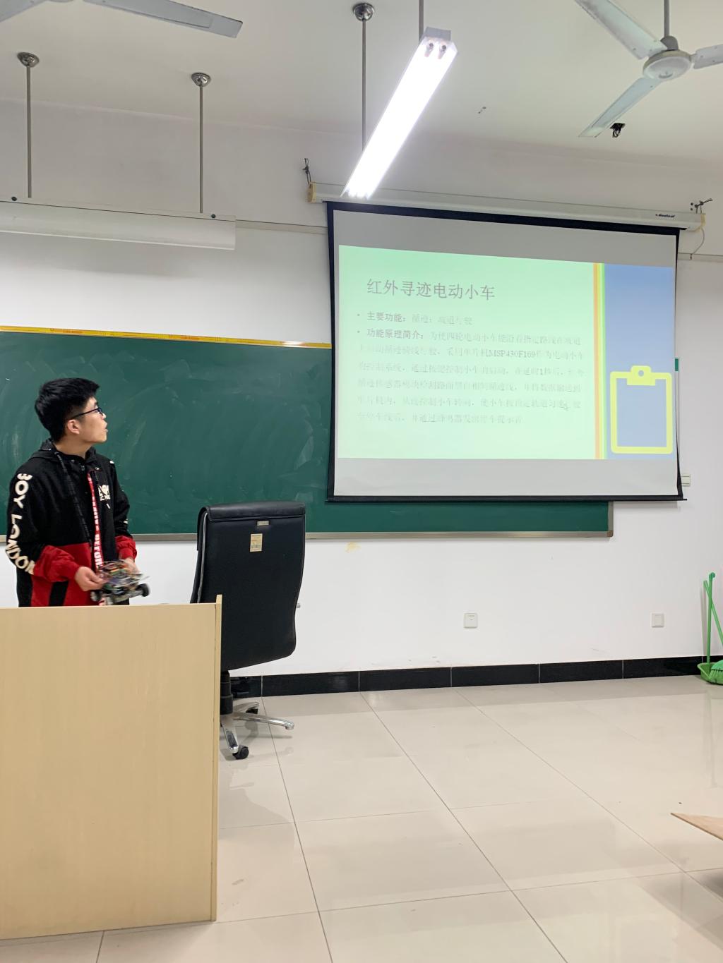 会议由电气专业教师张建老师主持。首先,由学生依次讲解作品的制作原理、制作成本及演示作品的功能,然后对各位老师的提问进行解答,最后,各位老师给出改进的意见及建议。很多作品受到了参会老师的高度赞赏。