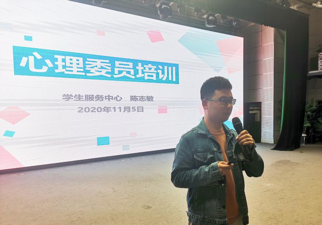 为提升心理委员的心理知识水平,充分发挥心理委员在心理互助和危机预防工作中的重要作用。11月5日中午,学生服务中心在大学生活动中心举办了2020级心理委员培训。本次培训由学生服务中心陈志敏主讲,学生服务中心学生教育主管姚敏和各系心理委员参与培训。