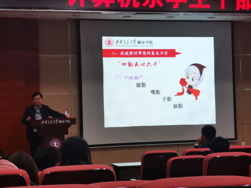 最后刘敏涛总结指出,此次培训不仅仅是一场简单的学生干部工作能力培训,更是促进全体学生干部人生中成长成才的重要一课。他要求全体学生干部要认真学习和充分领会辛红伟老师的讲授内容,主动用于指导实践工作,力求做好班级工作的引领者、服务者、管理者,进一步促进班级管理工作再上新台阶。