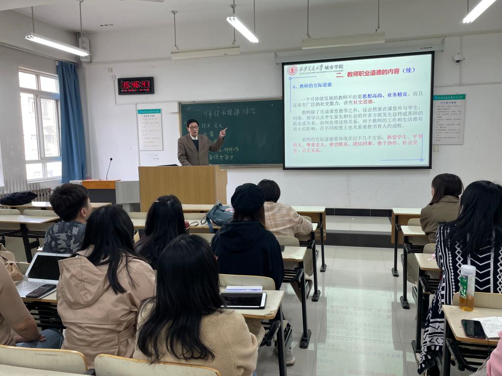阎治安教授针对传播系教学特点,结合自身多年工作经历,重点对“提高课堂教学质量、科研工作以及教师应具备的综合能力”等方面内容进行了讲解。并将城市学院教学听课单进行了拆分与详解,帮助传播系老师在教学形式上做到更加细致的规范化,在教学内容和方法手段上更符合学生的认知规律。