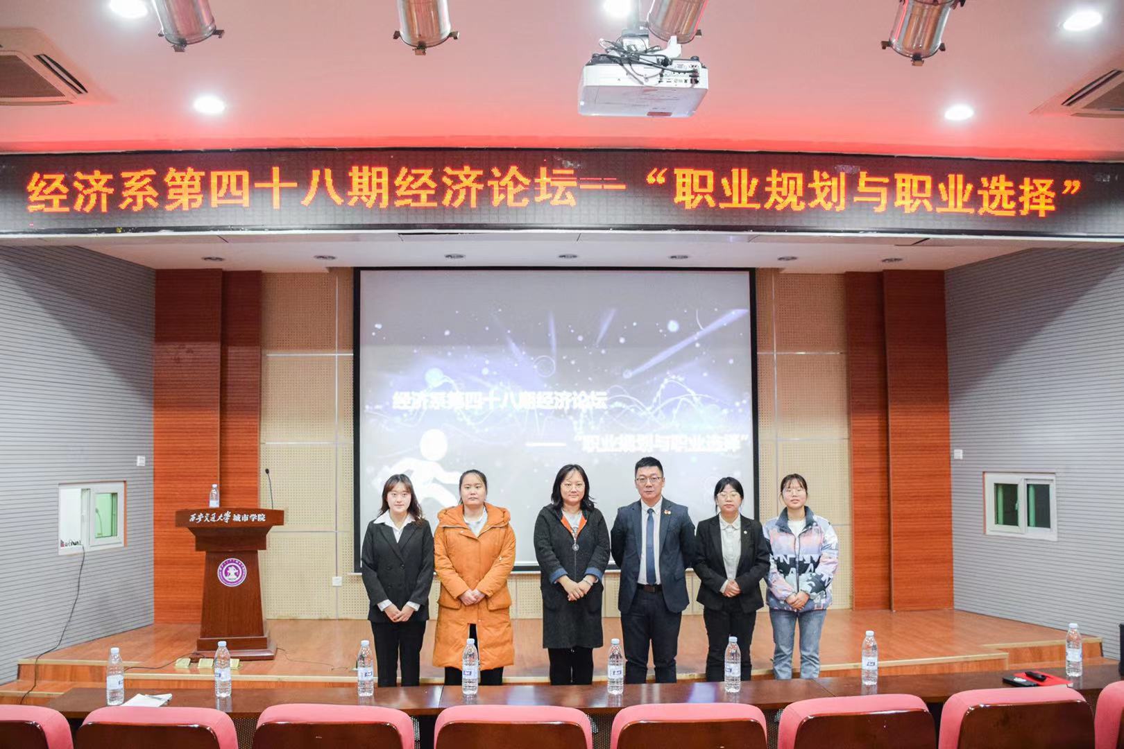 为了使同大学生认识到职业规划与选择的重要性,帮助同学们准确定位、树立明确的求职目标,西安交通大学城市学院经济系于2021年3月25日在F100召开第四十八期经济论坛—“职业规划与职业选择”。莅临本次活动的嘉宾有中国太平陕西分公司服务拓展部经理孙博、经济系副主任白丹、经济系学生工作负责人廉宇婷以及学工办杨静怡。本次活动由杜思璇同学主持。