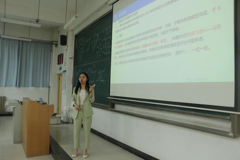 西安交通大学城市学院机械工程系于5月24日中午在教学楼D100召开了“机械工程系2021年在校生国家生源地信用助学贷款工作说明会”,本次说明会由20级辅导员史晓薇为准备申请生源地贷款的同学讲解助学贷款的具体事宜。