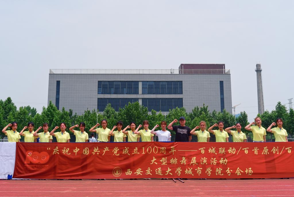 为庆祝建党100周年,激发广大师生的爱国热情,提高师生的健身意识,在国家体育总局体操运动管理中心的号召下,由全国排舞广场舞推广中心承办,西安交通大学城市学院积极响应号召,于6月1日在学院田径场进行“百城联动/百舞原创/百万同跳”大型排舞展演活动。本次展演活动由西安交通大学城市学院体育部金学斌主任宣布活动开始,体育部副主任邓豪以及体育部多位老师到场参加。