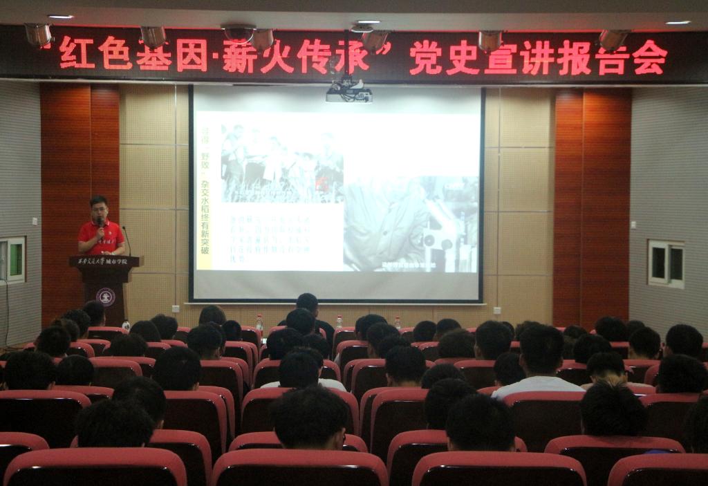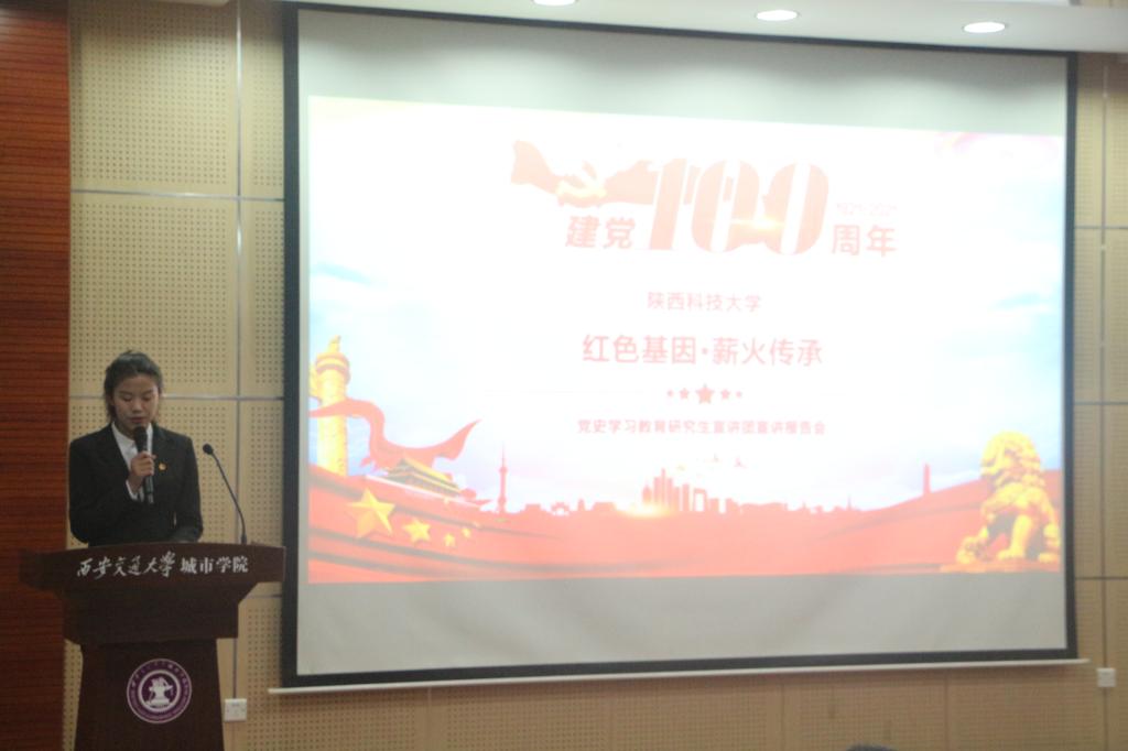 为深入学习贯彻习近平总书记在党史学习教育动员大会上的重要讲话精神,充分发挥高校理论宣讲的优势。西安交通大学城市学院机械工程系“红色基因·薪火传承”宣讲报告会于6月1日下午在F100举行。本次报告会邀请了陕西科技大学党史学习教育研究生宣讲团进行宣讲。院团委书记茹静、传播系学生工作负责人杨耀聪、机械工程系团工委书记崔佳楠以及机械工程系、传播系学生代表们参加本次会议。本次报告会由余思倩同学主持。
