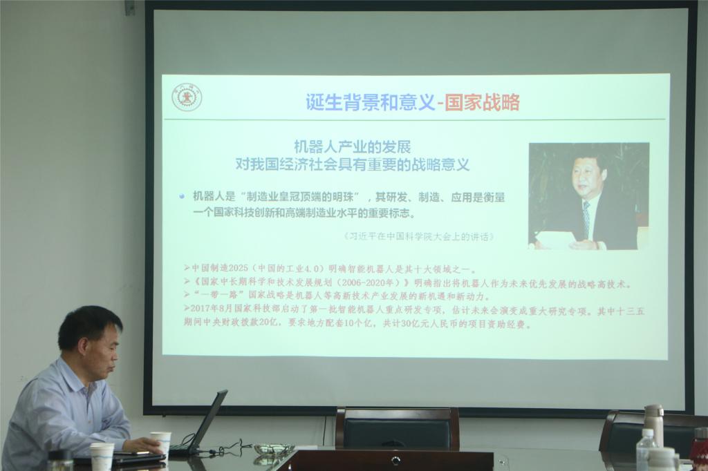 6月10日下午,机械工程系在行政楼504举办了“机械鼎新讲堂第四讲”,特邀陕西省智能机器人重点实验室学术带头人,高端装备研究院机器人与智能系统研究所副所长、生机电融合与服务机器人创新研究团队负责人,西安交通大学博士生导师张小栋教授来我院进行学术讲座。报告会由机械工程系主任刘吉轩教授主持,科技服务中心主任王小青出席,机械工程系全体教工、其他系室教师代表聆听讲座。讲座伊始,刘吉轩主任感谢和欢迎张教授莅临我院做这次专题讲座,并简介了张教授的科研方向和学术成果。