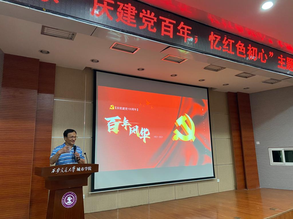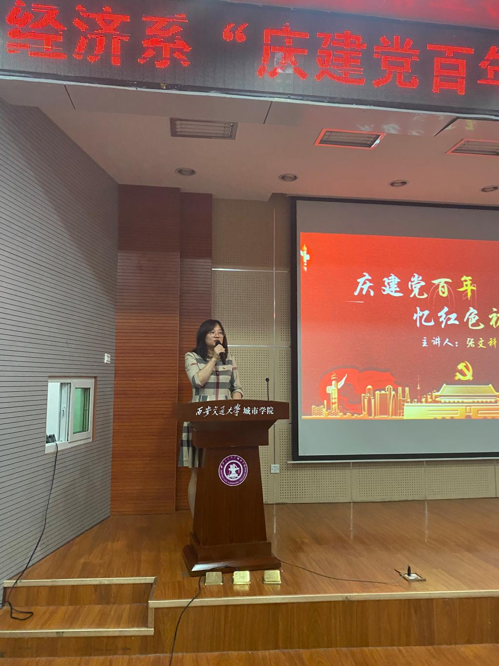 为了以昂扬的姿态迎接党的百年华诞,进一步增强党组织的凝聚力和战斗力,充分发挥党员的先锋模范作用,提高政治站位,增强“四个意识”、坚定“四个自信”,西安交通大学城市学院经济教工、学生党支部于6月23日在F100开展”庆建党百年,忆红色初心”主题党日活动,莅临本次活动的有学院党委委员杨健全、经济系主任张文科、教工党支部书记白丹、学生党支部书记廉宇婷。经济系全体教工、学生党员及积极分子参加,本次大会由廉宇婷主持。