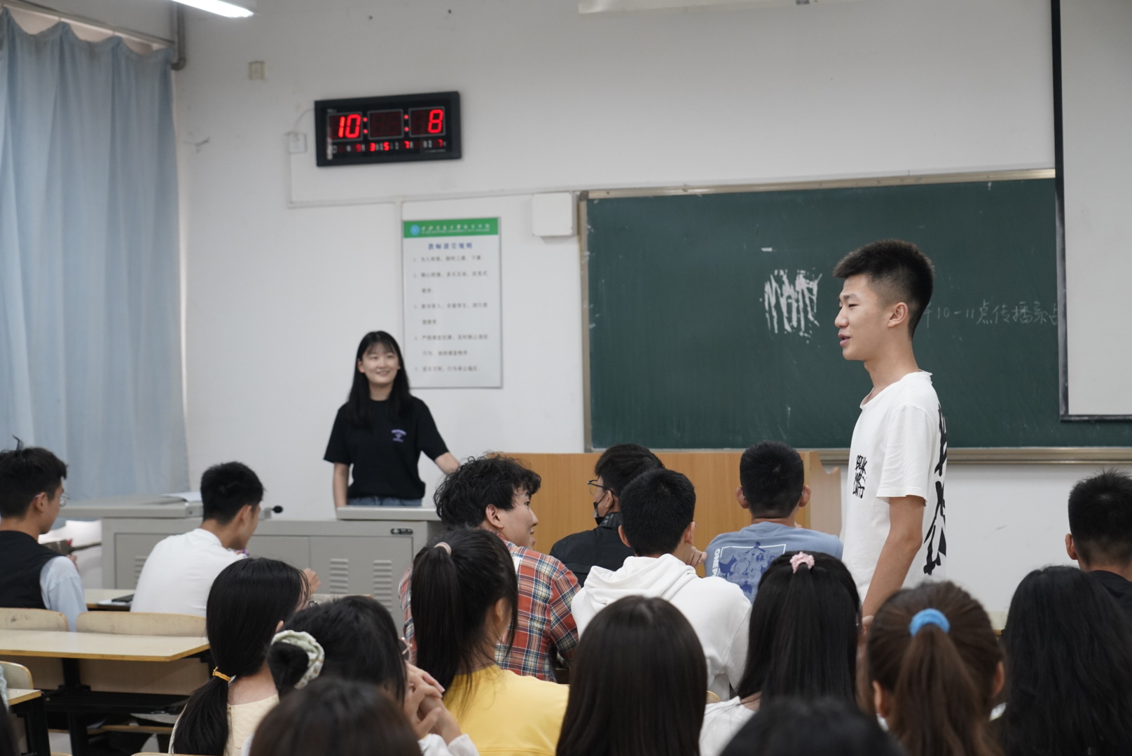 在专业认知教育结束后,由各班班导生组织召开了2021级新生入学后第一次主题班会。新生们逐一自我介绍并相互熟悉,同时确定了各班的临时班委,最后各班班主任对新生们提出相关要求,确立班规,勉励大家不断进步,严格遵守校规校纪,争做一名品学兼优的合格大学生。
