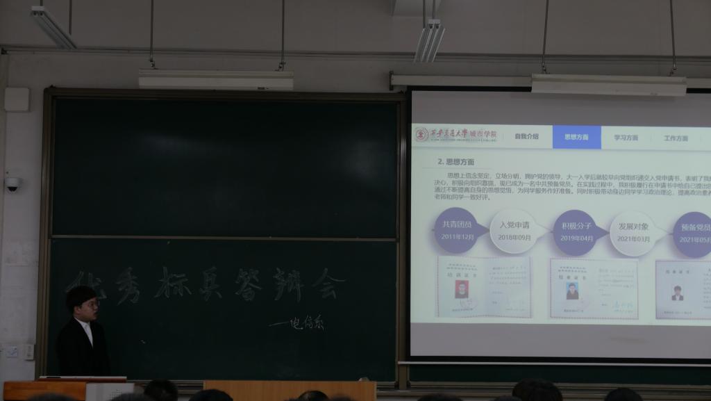 9月27日中午,电信系在B100举行2020至2021学年优秀标兵答辩暨优秀学生学业规划活动。根据学生综合测评成绩和个人申请,本次共计11学生通过现场答辩竞逐2021年度电信系“优秀学生标兵”候选人殊荣。电信系主任赵录怀、电气专人首席教授李守智、电信系主任助理张建、刘晓明、电信系学生工作负责人王姣、中兴通讯学院学工主管樊超,团工委书记徐娟、辅导员梁新雨、张华、史甜甜共同担任评委,各专业前十名学生、部分班干部及新生代表参会观摩。