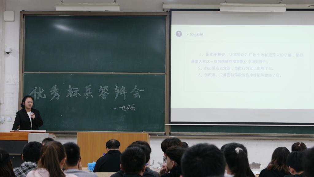 此次活动,首先由11位优秀的标兵候选人分别从思想、学习、工作、生活等多个方面进行汇报,他们突出的学习成绩、积极上进的思想态度、优秀的学科竞赛成绩、充实的社会实践活动赢得了现在观众的阵阵掌声,为大一新生树立了良好的榜样。接着由电信系学生工作负责人王姣为同学们做学业规划指导。她强调,每位同学在进入大学后都应有明确的学习目标和方向,根据自己的目标和特点,有针对性的学习和锻炼就会取得不错的成绩。除此之外,王姣对各年级学生提出了学业规划的目标,要求同学们在大学期间能够兼顾德育、智育、体育、美育等各个方面发展。最后通过评委一致讨论确定电气类192班陈泽昕同学为电信系优秀标兵候选人。