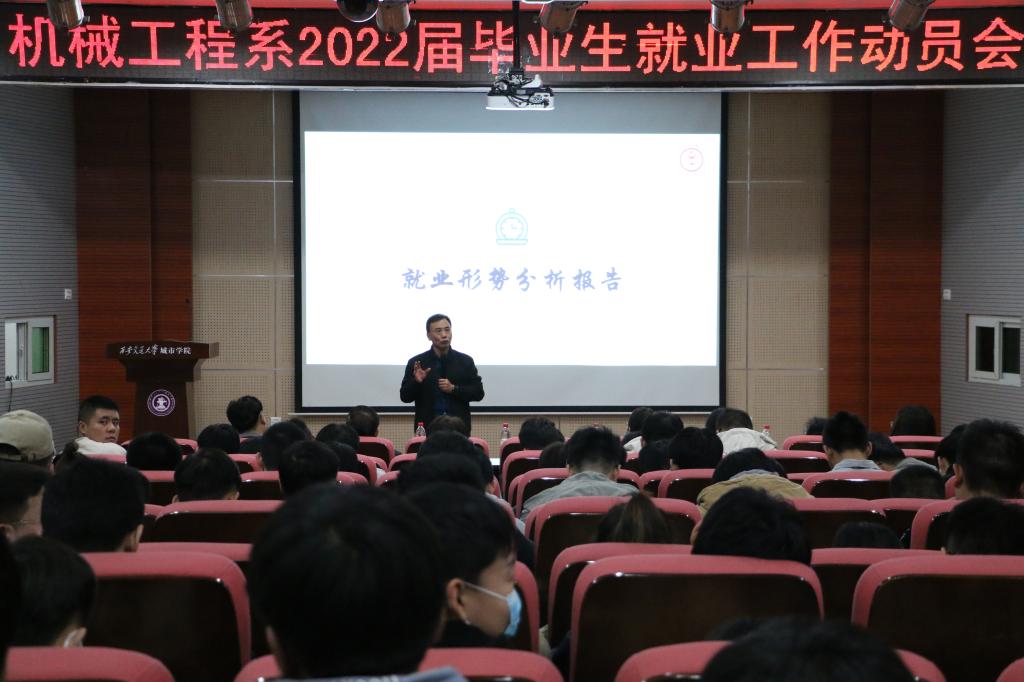 为深入分析当前毕业生就业形势,进一步推进2022届毕业生就业工作,西安交通大学城市学院机械工程系于10月20日中午在F100召开机械工程系2022届毕业生就业工作动员会。出席本次大会的有学生服务中心主任张学堂、机械工程系主任刘吉轩、机械工程系系务会成员、毕业班班主任以及2022届全体毕业生,本次会议由机械工程系主任助理吴昊翔主持。