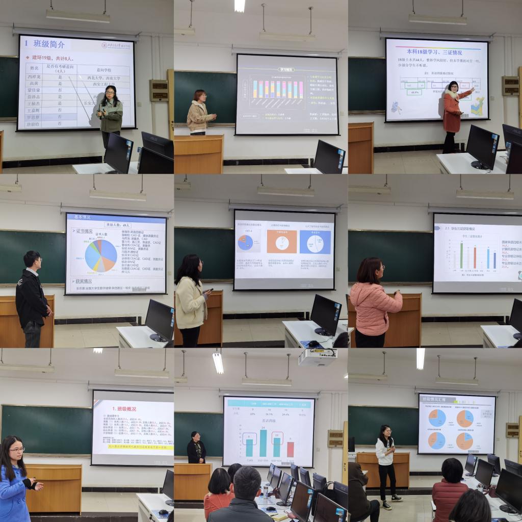 结合土建系教工党支部“我为师生办实事”活动,各班班主任和辅导员分别汇报了所带班级学业帮扶情况,各位老师从班级学生概况、学籍预警、三证通过情况、学业帮扶措施、存在问题及改进方法等几个方面进行汇报交流。每位老师都对班级情况进行了充分分析,针对各自所带班级特点也提出不同的带班策略,在场老师充分交流,气氛热烈。