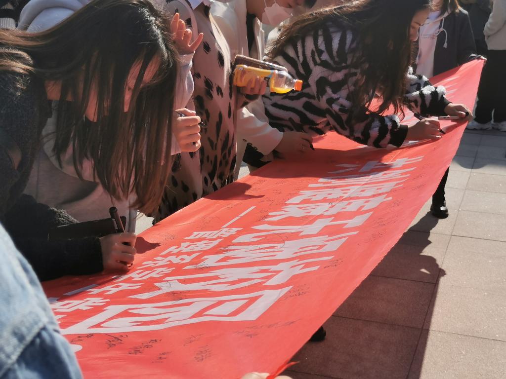 在中快餐厅广场,师生党员共同积极准备此次活动所需的各种资料物品,一切准备就绪后,拉起横幅,轮流值班。向同学们宣传各种戒烟知识并普及吸烟的危害,邀请过往同学参与“人人参与控烟活动,共创健康无烟校园”横幅签名活动,以表禁烟决心!通过学生党员的积极宣传,此次活动得到了老师同学们的积极响应和认可,许多男同学当场表达愿意以身作则,支持戒烟活动。