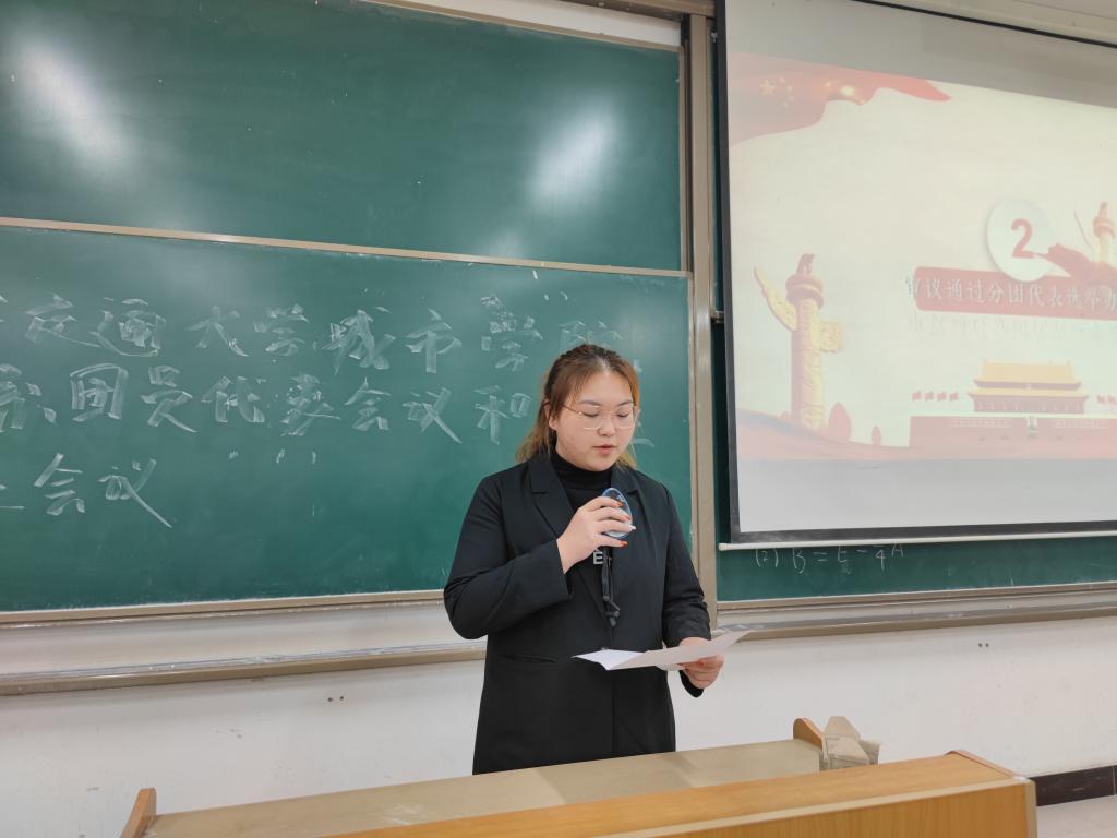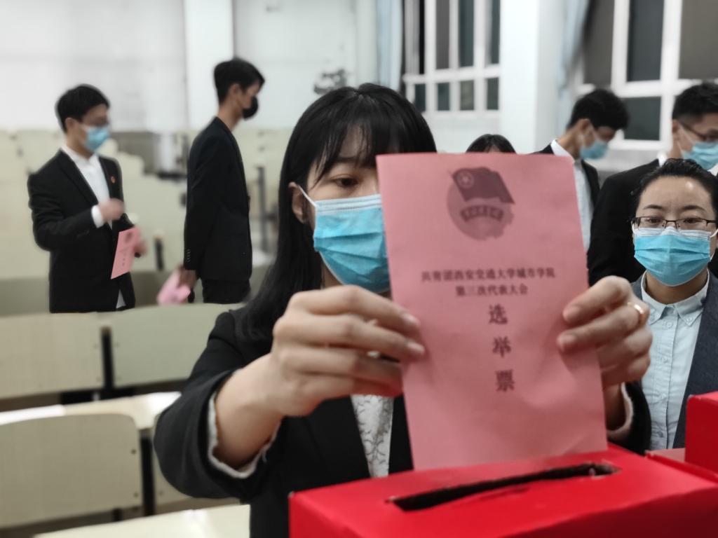 大会在庄严的国歌声中拉开帷幕。会议开始,首先由陈玟同志宣读了电信系《团员代表和学生代表选举办法》,经全体参会人员审议后获得一致举手赞成。随后,由崔晗同学分别介绍团员代表和学生代表候选人并经审议通过的总监票员、监票员的监督和总计票员、记票员的统计,在全体与会代表以无记名投票的方式进行了民主选举,以20%的差额先后选举产生了由金牧羊、徐娟等12名同志组成的西安交通大学城市学院第三次代表大会代表,以及由王泽璇、卢芊芊等13名同学组成的西安交通大学城市学院第四次学生代表大会学生代表。