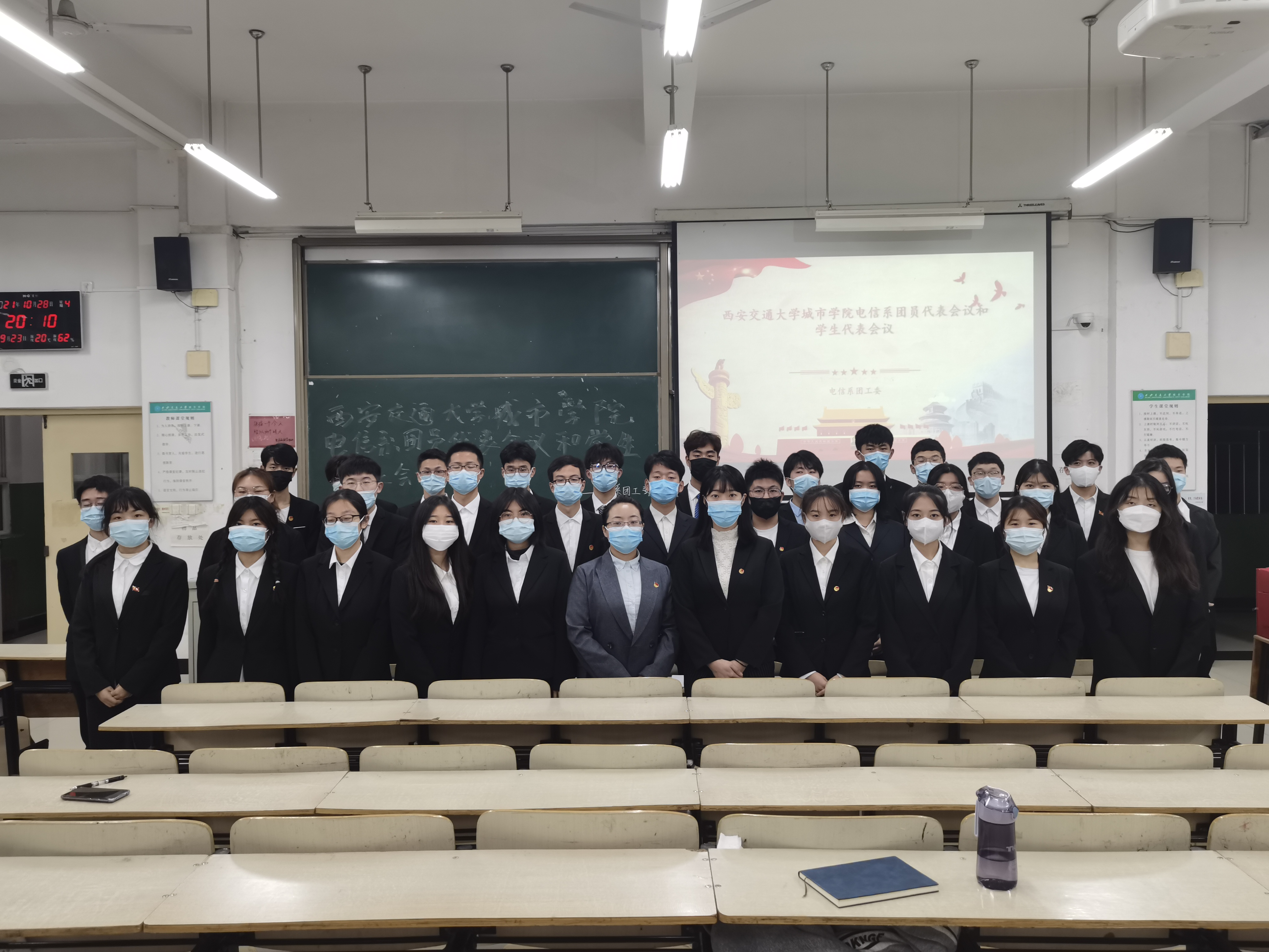 10月28日西安交通大学城市学院电信系于教学楼D200召开了电信系团员代表会议和学生代表会议。出席本次会议的有院团委金牧羊老师、电信系徐娟老师及团员代表,学生代表等30余人。