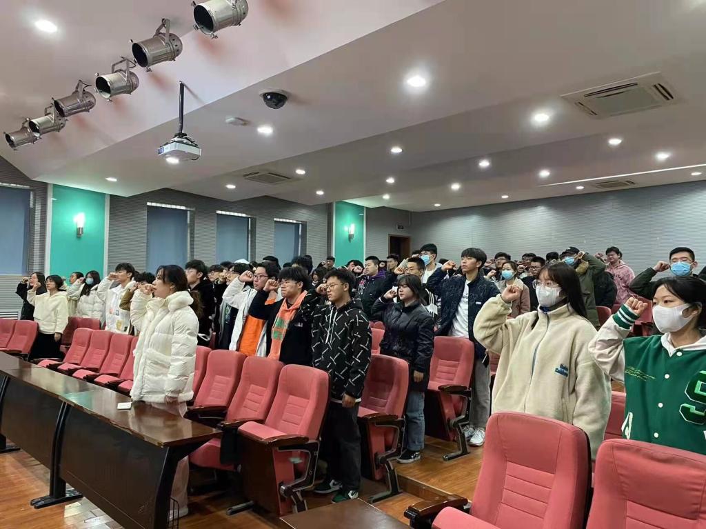 我系教工支部书记杨恩宁老师为本期“青马班”作开班致辞。杨老师结合他在工作多年的亲身体会,倡议各位学生骨干树立远大理想,积极进取,共同以青春报效祖国。“青年一代有理想、有本领、有担当,国家就有前途,民族就有希望”,杨老师以习近平总书记针对青年工作的相关论述为引,为学员们讲述了青年一代应如何担当起新时代的责任与使命,成长为祖国富强、民族复兴伟大事业中的中坚力量。他以“请党放心•强国有我”为主题,告诉青年学子,要牢记初心使命,开创美好未来,同时教育同学们学习党史,感悟思想,坚定的学习贯彻党的创新理论。杨老师着重指出,新的征程上,我们必须坚持党的全面领导,不断完善党的领导,增强“四个意识”,坚定“四个自信”,做到“两个维护”,牢记“国之大者”。杨老师为我们讲述了青年应有的的职责与担当,并带领全体参会人员进行宣誓,在振奋人心的誓言后,带领大家观看了庆祝中国共产党成立100周年大会记录视频,让那份热血在每个人心里滚滚流淌。