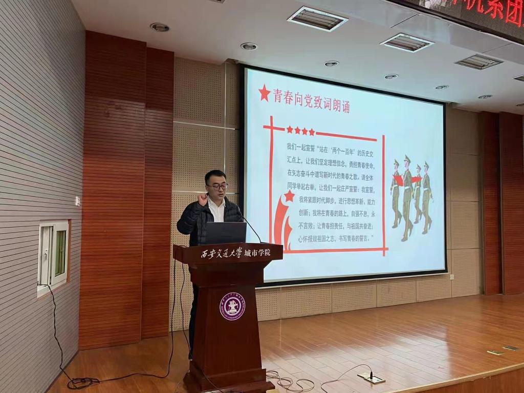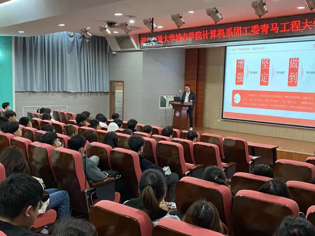 为深入学习贯彻习近平总书记关于青年工作强调的重要思想,不断强化“青马工程”为党育才的政治功能,努力培育锻造一批信仰坚定、能力突出、素质优良、作风过硬的青年政治骨干,西安交通大学城市学院计算机系团工委于11月24号中午在F100举办了“青年马克思主义者培养工程”专题培训。出席本次会议的有:计算机系教工党支部书记杨恩宁、计算机系团工委书记范文彬及计算机系“青马工程”大骨班全体成员。卓妮娜同学作为本次专题培训的主持人。