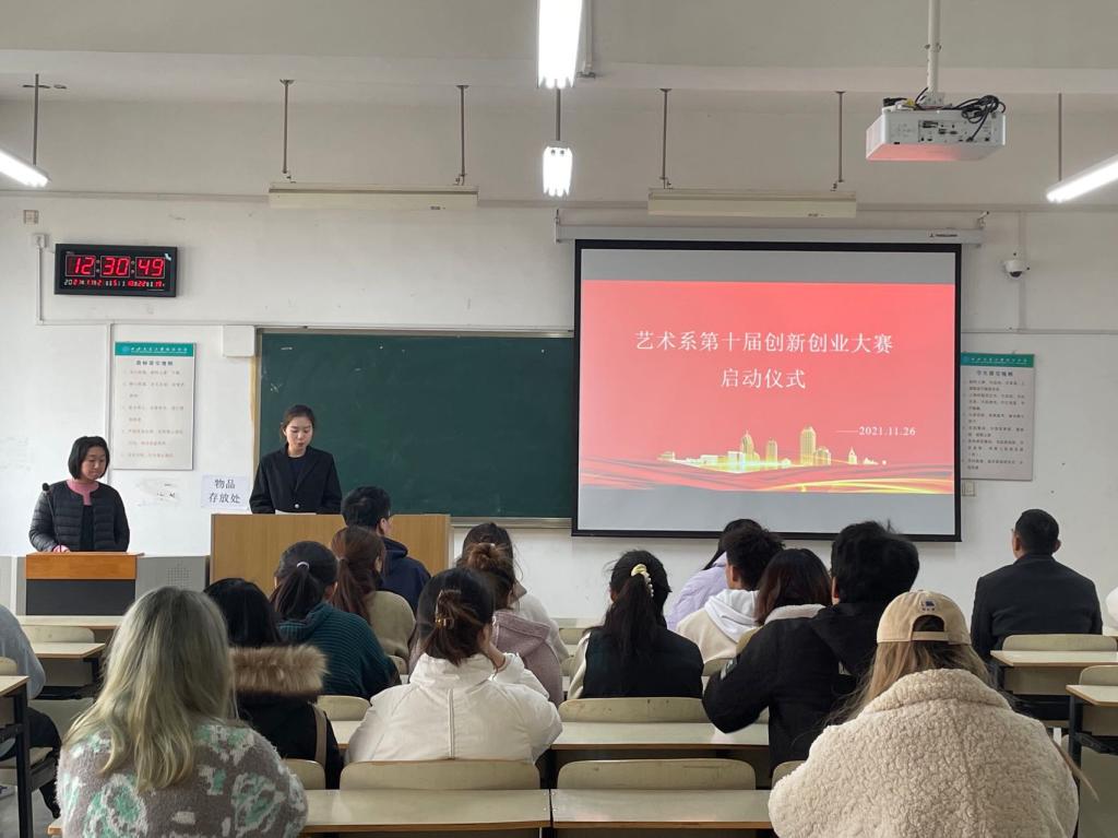 为进一步激发学生创新创业热情,提高大学生创新、创意、创造、创业的意识和能力,增加同学们对创新创业的兴趣和实践能力,引导、鼓励广大学生踊跃参加各类型的创新创业活动,真正落实教育部以赛促教、以赛促学、以赛促创要求,西安交通大学城市学院艺术系于11月26日中午在B416举行艺术系第十届创新创业启动仪式,出席本次会议的有艺术系主任助理韩仲远,学生工作负责人李成,团工委书记杨梦圆,辅导员冯凯闯,张小欢。本次会议由张悦同学主持。
