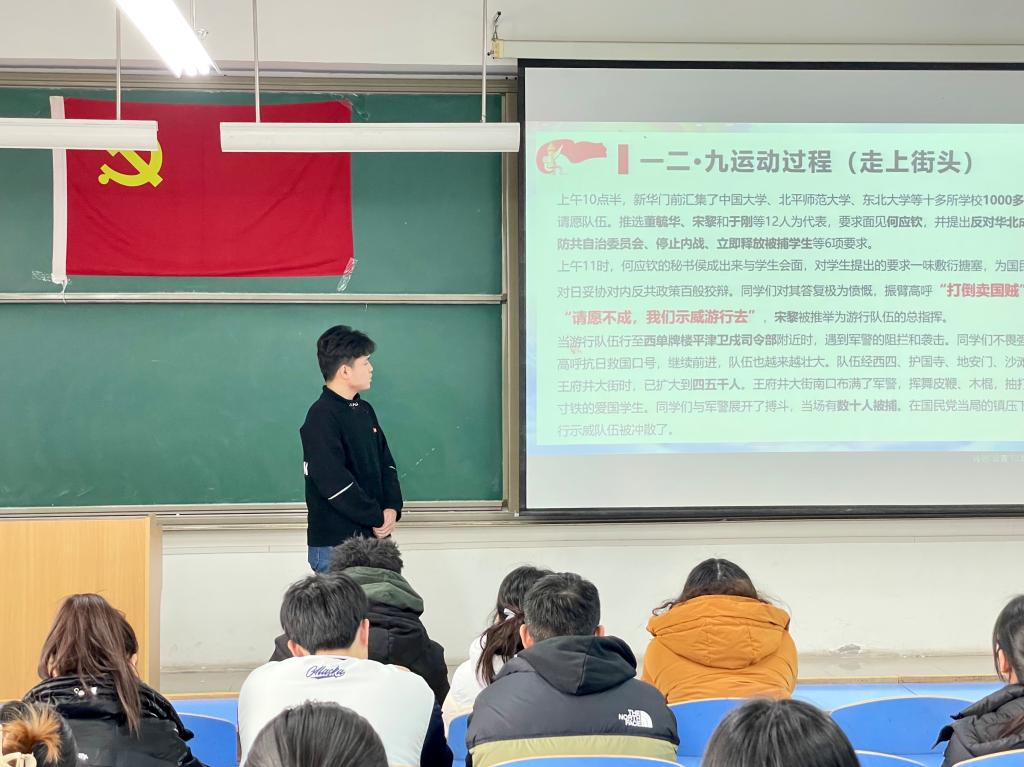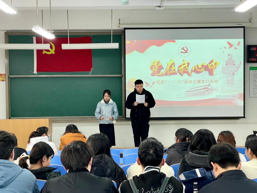 为铭记和传承“一二•九运动”精神,激发学生的爱国热情,增强民族责任感和自豪感,西安交通大学城市学院经济系学生党支部于12月9日中午在教二-215开展了以“党在我心中”为主题的“一二·九”爱国主题党日活动。党员同志们踊跃参与,用动情的朗诵、深情的演讲,展示了锐意进取、积极向上的良好精神风貌。参与本次活动的有经济系学生党支部书记廉宇婷、组织委员杨静怡、宣传委员朱宝瑞及全体党员,马鸣志和罗娟主持。