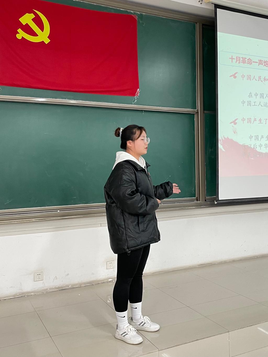 经济系学生党支部书记廉宇婷发表总结讲话。她指出通过党支部举行纪念“一二•九”爱国主题党日活动,希望党员同志们以史为鉴,坚定理想信念,传承红色基因,牢记初心使命,刻苦学习科学文化知识,以此增长才干及本领,成为中国特色社会主义事业的建设者和接班人。并对本次主题党日活动举办过程中的优点给予肯定,同时也明确指出了每一名党员存在的不足,鼓励同学们不忘初心、牢记使命、砥砺前行,为民族复兴、国家强盛、学校发展贡献出自己的力量。