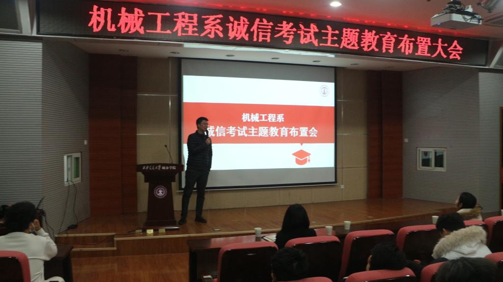 西安交通大学城市学院机械工程系于12月10日在F100报告厅举行“多彩青春,活力校园”中期推进会暨诚信考试主题教育布置会。机械工程系主任助理吴昊翔、团学工作负责人李乐、20级辅导员史晓薇、19级辅导员高荣以及大一至大四年级全体班委参会。