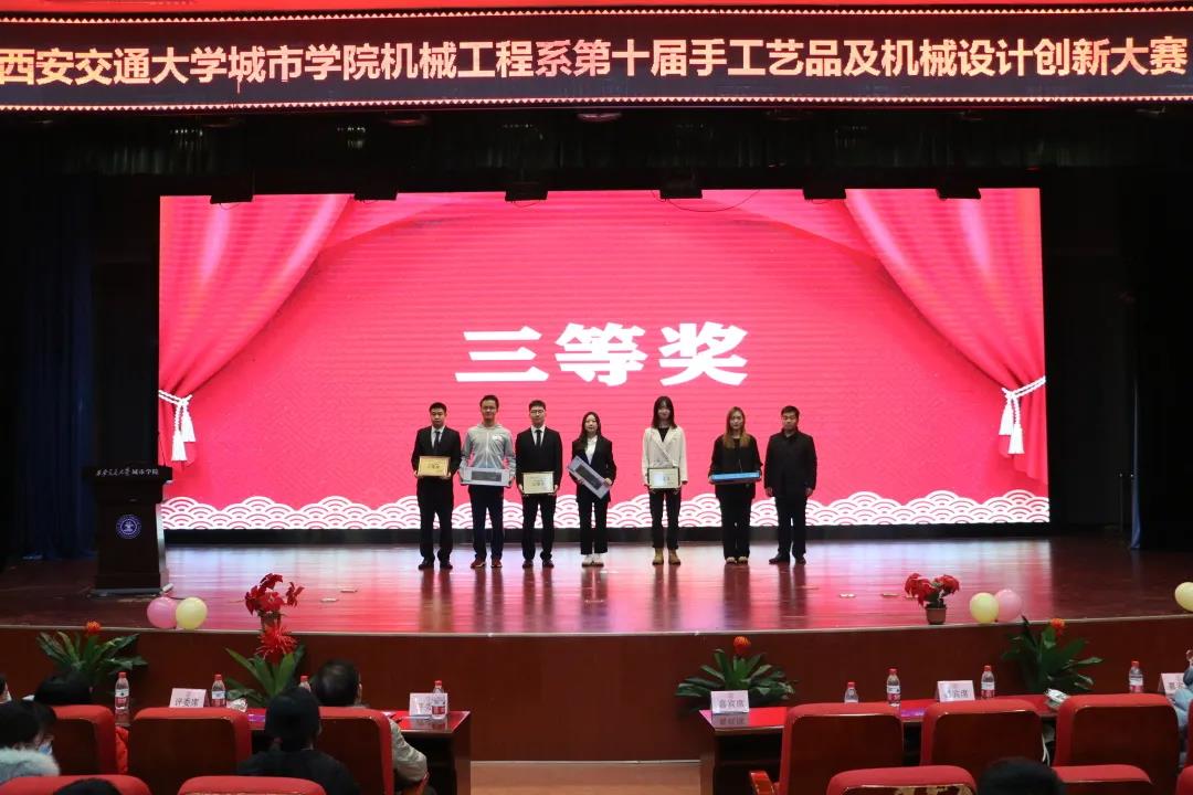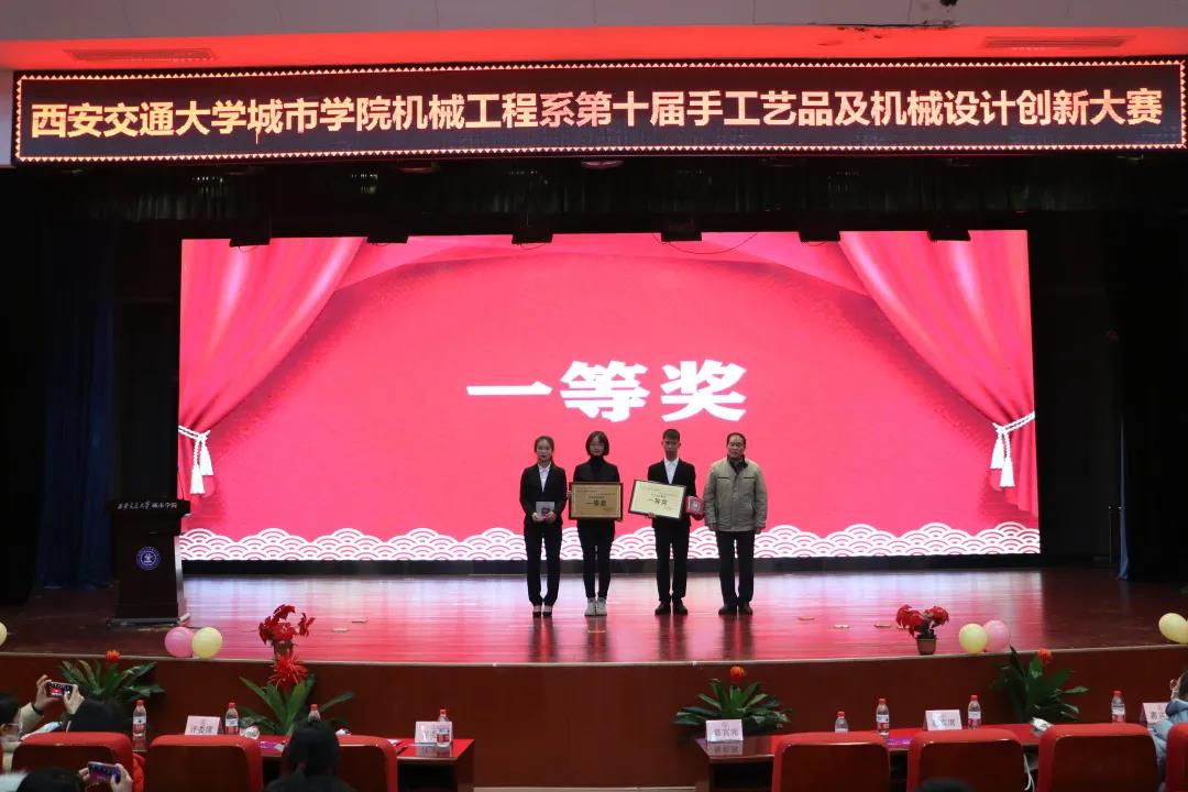为丰富大学生校园生活,活跃校园文化,展现我城院学子之风采。西安交通大学城市学院机械工程系于12月15日晚在教二报告厅举行了第十届“智创自然,竞显新艺”手工艺品及机械设计创新大赛总决赛。出席本次比赛的领导和嘉宾有:学生服务中心副主任辛红伟、艺术系副主任张春新、经济系主任助理廉宇婷、学院团委书记茹静、电信系学生工作负责人王姣、机械工程系主任兼机制专业首席教授刘吉轩、机器人工程专业首席教授徐学武、能动专业负责人李莉、教工党支部书记李娜娜、主任助理贾谦、主任助理吴昊翔、专业教师张伟以及各系团工委书记及辅导员老师。本次大赛由高欣雨和常宇浩同学担任主持。